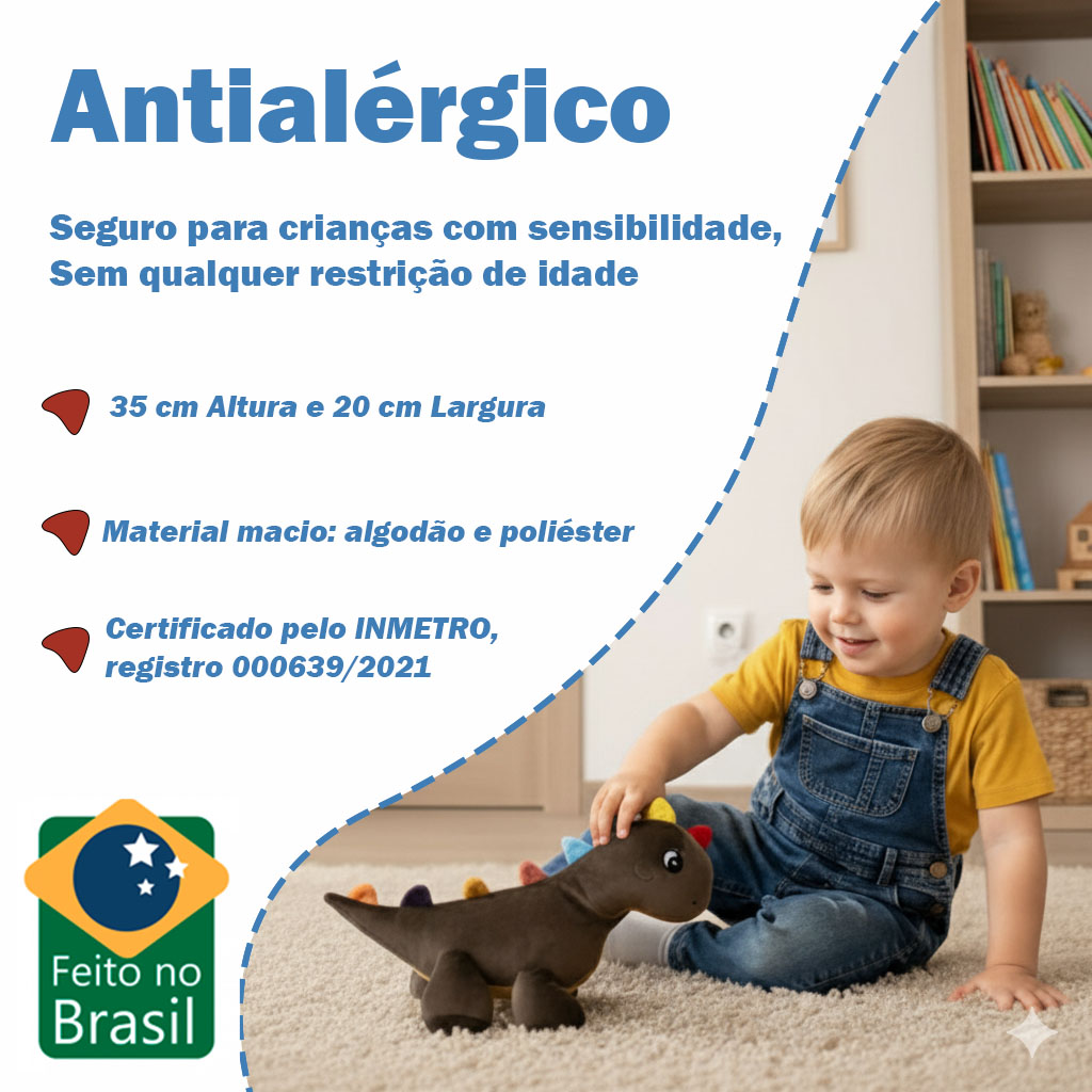 DINOSSAURO DE PELÚCIA DUDUREX LAVÁVEL ANTIALÉRGICO 36CM