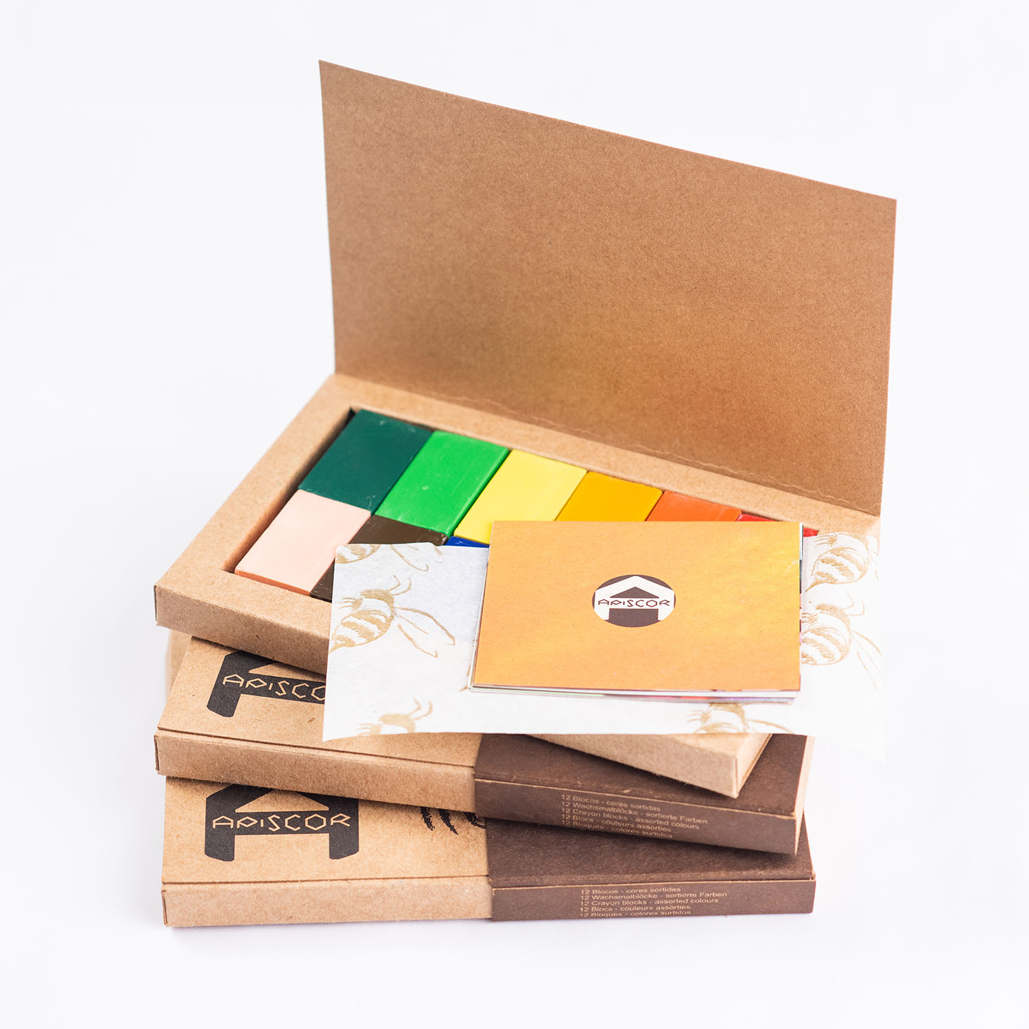 Com cores vibrantes, um aroma peculiar de cera de abelha e mais resistentes que os gizes comuns, os gizes da Apiscor podem ser utilizados com segurança pelas crianças, pois são atóxicos.