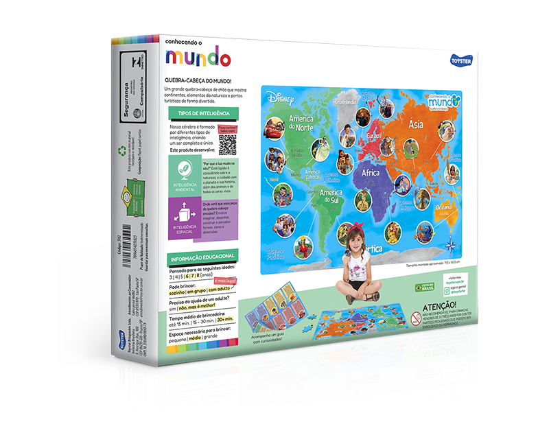 Quebra cabeça de chão com peças grandes e linda ilustração. Através do queridos personagens da Disney a criança vai associar países e culturas nos cinco continentes.