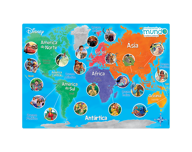 Monte o Quebra Cabeça Mapa do Mundo e descubra curiosidades incríveis sobre os personagens da Disney.